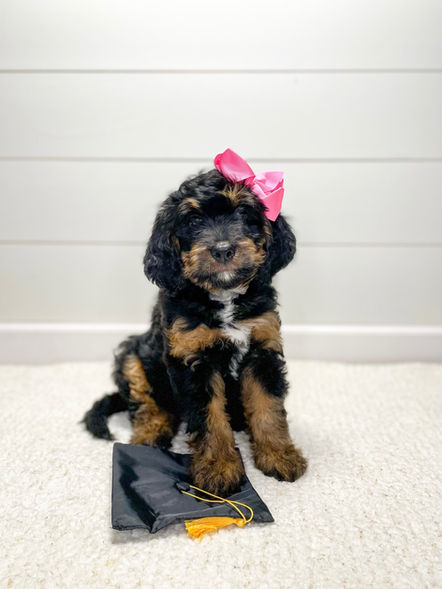 Together we can empower your puppy to have confidence, feel loved, and take on new experiences with ease! Be sure to ask if there is availability when you commit to a specific litter for adoption. Our training program is offered on a first come-first serve basis and has limited availability. Families will receive daily updates (journal entry with pics and/or videos), a training report card at completion, and a Skills Showcase video to refer back to and show off puppy's amazing progress and abilities!